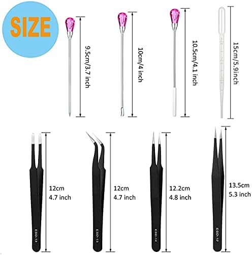【11 Pcs Cute Resin Tools】: Our metal resin stir sticks includes 2 pcs stir sticks, 2 pcs resin spoons, 2 pcs poke needles, 4 pcs epoxy resin tweezers and 1 pc transfer pipette. These uv resin tools are totally enough for your daily needs and use. They will be your practical assistants in DIY resin work. NOTE:If the pink gems are loose. A simple twist and they are fine.