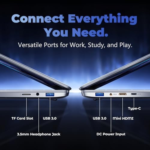 【Versatile Ports & Flexible 180° Design】Connect with ease using USB 3.0, Mini HDMI, and a TF card slot. The 180° hinge and lightweight design make this portable laptop adaptable for presentations, study, or movies.