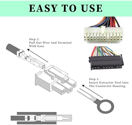 Easy to Use: The automotive tools is easy to use, just push and pull the terminal pins with connector removal tool for removal effortlessly from the wire harness connectors without any damage. Kindly Note: Most of the wire harnesses are held in place with barb clips. You can use a tool to lift or flatten the barbs, and then gently pull out the wire ends. Pay special attention to strength and direction