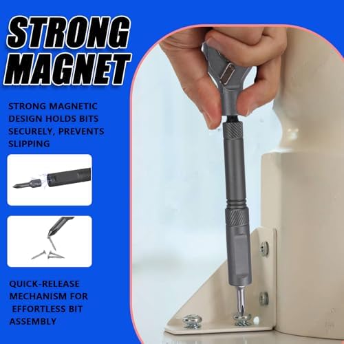 Magnetic interface: Strong magnetic bit holder keeps screwdriver bits securely in place while working, preventing drops and lost bits. Equipped with a storage box, the shell is sturdy, ensuring neat storage and easy portability.