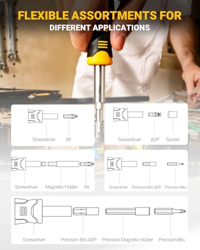 [Multiple Connection Methods for Sockets and Bits & Wide Application] The high quality bits ensure a firm grip and smooth operation, reduce fastener wear and improve torque transmission. Multiple connection methods, more practical. Very suitable for car repair, electronic product repair, home maintenance, etc. The set comes with a variety of precision screwdriver bits. It’s a great repair tool kit for computer, laptop, glasses, watches, cameras, bicycles and other small items, which is convenient and practical.