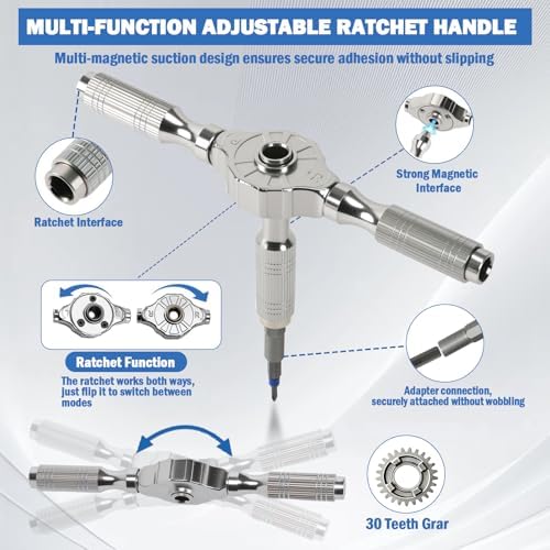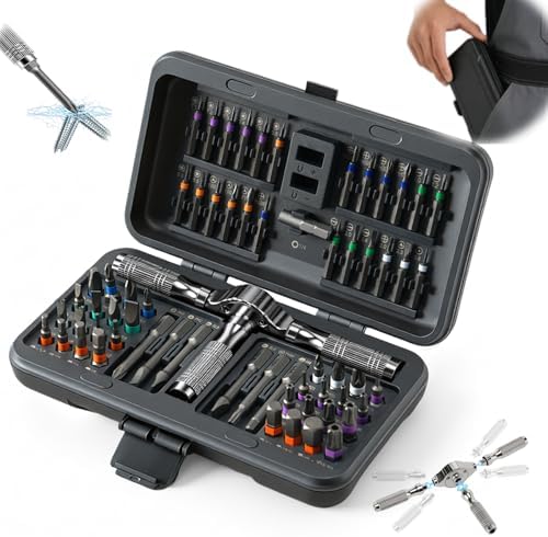 【Magnetic Tips & Color-Coded Organization】The magnetic handle features upgraded super-strong magnetism, letting you snap bits into place with a smooth, secure connection—once attached, each bit firmly grips screws, preventing slipping in any working condition. A built-in magnetizer in the case lets you magnetize or demagnetize bits on demand for consistent performance. Color-coded rings help you instantly identify the right bit—boosting repair efficiency and simplifying organization.