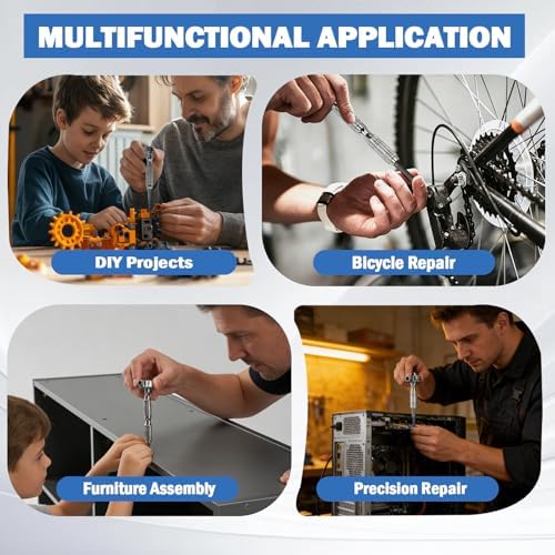 【Ergonomic Ratcheting T-Handle】The aluminum T-handle features a palm-friendly, non-slip grip to reduce hand fatigue. Its modular design lets you use it as a standard T-handle, extend for deep reach, or shorten for tight spaces. The 2-way ratchet provides smooth forward/reverse action, cutting wrist strain and keeping you comfortable from start to finish.