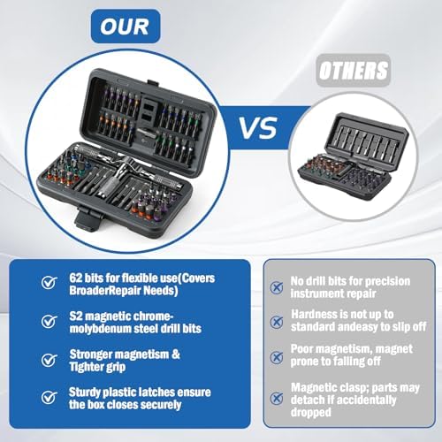 【Compact Storage & Great Gift Idea】The compact Repair Tool Kit keeps all 66 bits organized and portable—fits easily in a glove box, desk drawer, or backpack. Ideal for homeowners, DIYers, and pros alike—whether fixing electronics, tackling auto repairs, or handling emergency repairs, this set is always ready. A practical gift for Father’s Day, birthdays, Christmas, or any occasion.