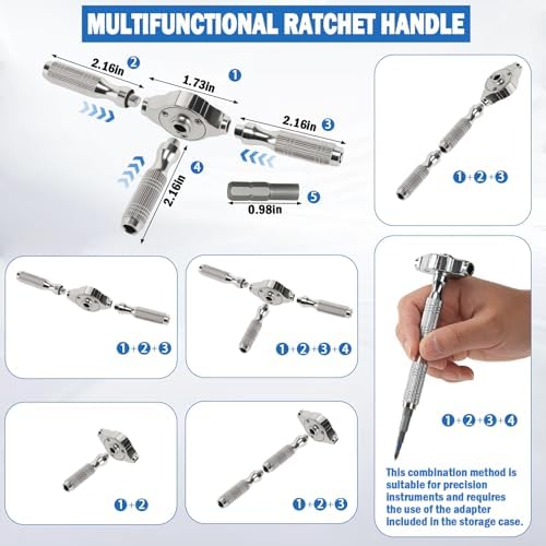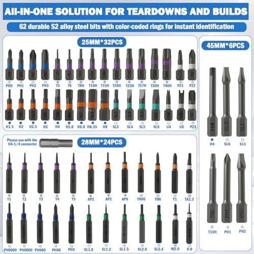 【66-in-1 Multi-Purpose Screwdriver Set】This all-in-one kit is the perfect tool kit for home use — handling everything from eyeglass repairs to furniture assembly. Featuring 6 long (45mm) bits, 56 short (25mm & 28mm) bits, plus an adapter—covering all common types: PH, SL, Torx, Hex, PZ, U-shaped, and more.As a versatile precision screwdriver set, it’s compatible with iPhones, bikes, appliances, and beyond.The detachable handle extends for hard-to-reach areas and adjusts on the fly, giving you the flexibility to tackle any task with ease.