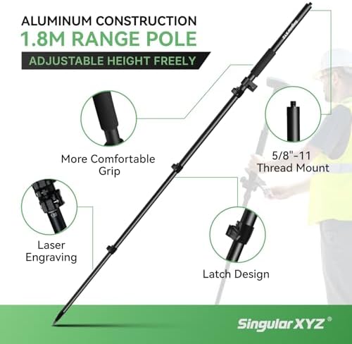 Versatile Height Adjustment: SingularXYZ surveying pole offers secure, multi-position height locking within the 1.6m/5.24ft to 1.8m/5.91ft range, enabling rapid adaptation to diverse project requirements.
