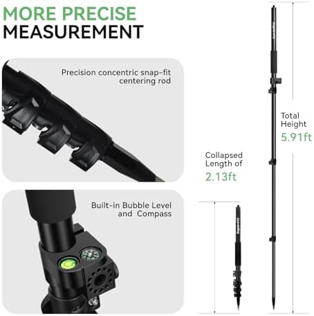 Lightning-Fast Setup & Easy Operation: Our gps pole features a streamlined one-piece design with dual locking systems and compass for significantly quicker and easier setup compared to traditional rods, ideal for time-critical surveying work.