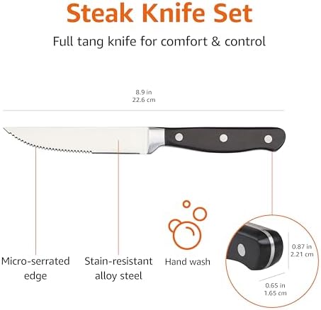 Includes 8 steak knives forged from a single piece of stainless steel