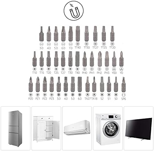 73-piece ratchet wrench and screwdriver set for easily tightening and loosening fasteners; the precision screwdriver bits are non-magnetic, which is suitable for small electronic instruments like watches, smartphones, glasses, and more; the other bits are magnetic, which is suitable for repairing popular electric appliances, like air conditioners, washing machines, refrigerators, TVs, and more