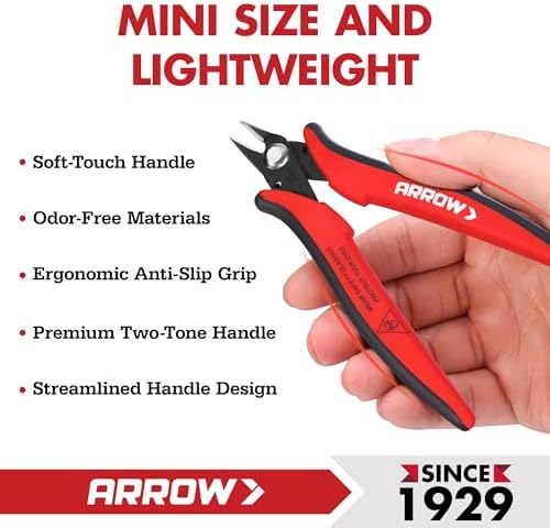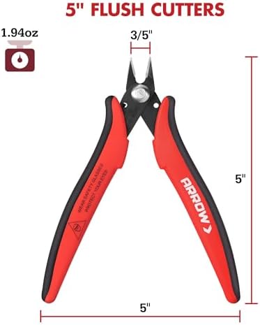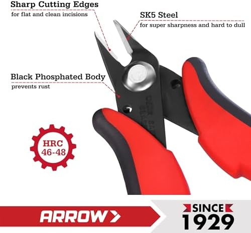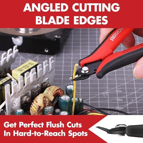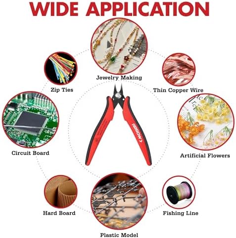 Versatile Cutting Performance: Multi-purpose diagonal cutter handles soft copper and aluminum wires, plastic zip ties, electronic components, jewelry wires, craft flowers, model parts, and more. Angled head design excels in PCB trimming, electrical repairs, and delicate crafting. Compact 5-inch size fits tight spaces (e.g., electronics, models) with ease