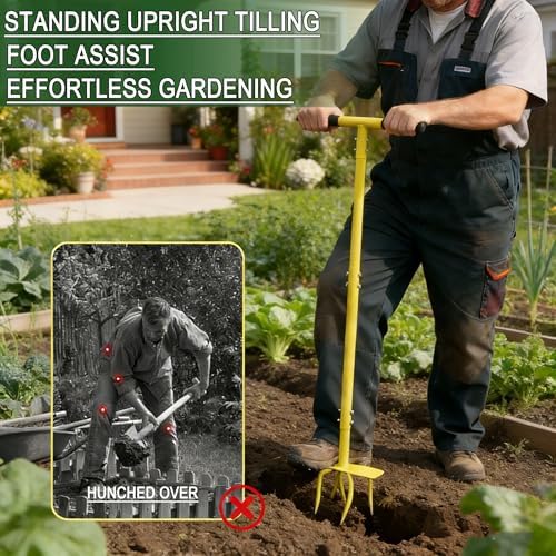 Efficient Tillage: The hand tiller features a sharp carbon steel tooth design, which can easily loosen, turn and deep tillage the soil, making it easy to handle small and medium-sized gardens, flower beds and planting boxes; the innovative two-step pedal operation makes weeding and loosening the soil simple and efficient