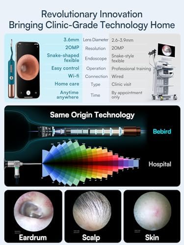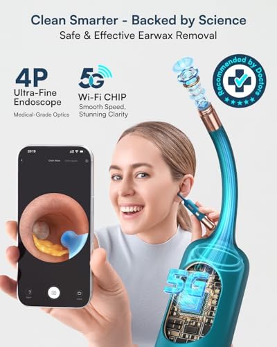 【Ear Wax Removal Kit with 2K HD Camera】The Bebird ear wax removal tool camera features a high-definition 2K visual ear cleaning camera with a high-grade 4P endoscope lens and a pioneering 5G Wi-Fi chip. This visual ear cleaner delivers a stable, real-time HD feed to your smartphone with near-zero latency—making it easy to see, clean, and monitor ear health safely at home.