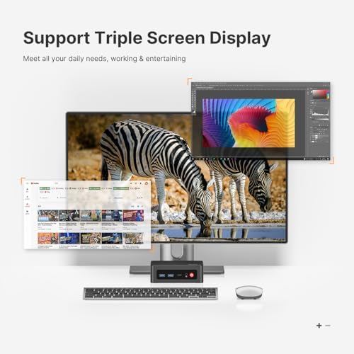 【4K Triple Display & USB-C & USB3.2】The mini desktop computer Drives three 4K monitors via HDMI, DisplayPort and USB-C for multi-window productivity or immersive home theater setups;USB 3.2 meets your multi-interface transfer needs.