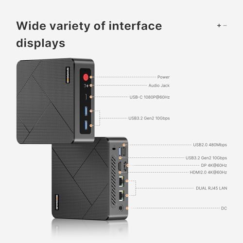 【Dual RJ45 LAN & Wi-Fi 5 & BT5.0】Equipped with Dual Gigabit Ethernet, dual-band Wi-Fi 5, and Bluetooth 5.0, this ryzen mini pc ensure stable connections for 4K streaming, video calls, and file transfers. Wirelessly connect keyboards, headphones and speakers via BT5.0 ideal for office productivity and home entertainment.