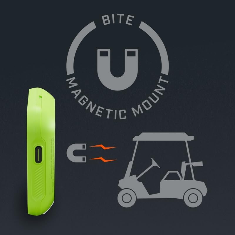 Magnetic Cart Mount: Built-in BITE magnet securely attaches the GPS to your cart bar for quick, convenient viewing during play.