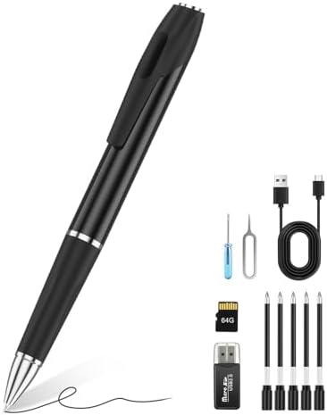 Package Includes: Camera pen, 64 GB memory card, USB charging cable, spare pen nibs and necessary tools