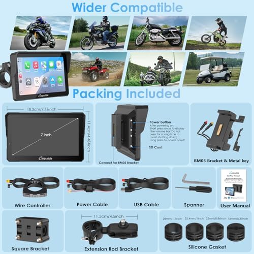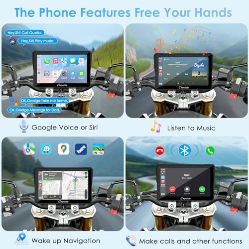 【7″ HD IPS Touch Screen】: The carplay screen for motorcycle is equipped with a 7-inch high-definition IPS touch screen with a resolution of 1024*600, making the visual effect more intuitive and the touch responsive. Vibrant 65K color and up to 1000nit peak brightness ,provide a clear and wonderful viewing experience even under bright outdoor sunlight. Note: It is compatible with iOS 6 and above,and Android 11 and above systems. Incompatible with Huawei phones and phones running HarmonyOS.
