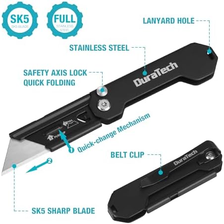 Compact Utility Knife with Belt Clip – EDC folding utility knife can be placed easily in the pocket, the box cutter offers a nice look. Pocket clip leads to easy and safe carry, the clip may be a little bit loose but will not fall, be relax and take care during use