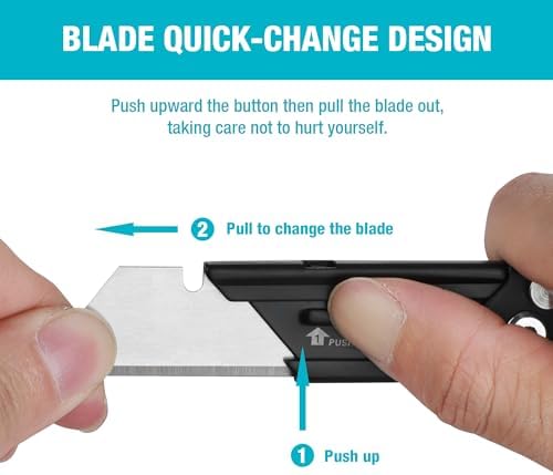Quick Change Blade Mechanism – Allow change of blades without tools. Always keep your blade fresh and sharp for a new sharp cutting tip. It can be replaced with all standard utility knife blade