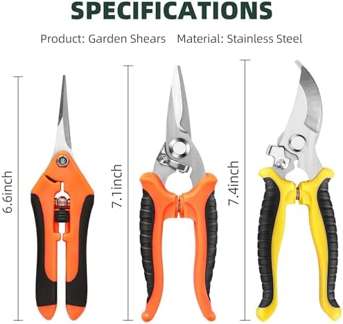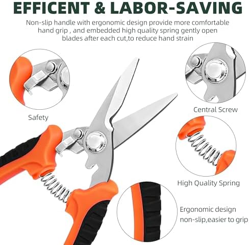 ERGONOMICALLY DESIGNED RUBBER GRIP: Our pruning shears are made of high-purity PP+TPR plastic, has strong toughness and strength. The handle part is ergonomic in design and non-slip.