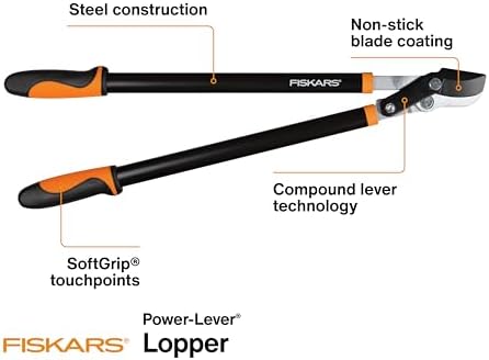 IDEAL BRANCH TRIMMER: Fiskars 28-Inch Power-Lever Bypass Garden Lopper glides through branches up to 1.75″ thick for easy cuts; Works well for trimming tree branches to maintain your yard and garden and encourage overall plant health and appearance