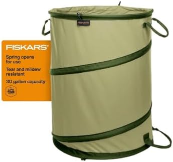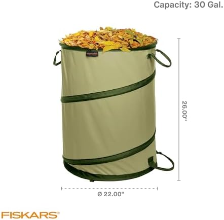 LONG-LASTING AND RELIABLE: Vinyl-coated polyester construction keeps leaf bag tear and mildew resistant through heavy use, makes cleaning easy, and provide excellent durability for lasting value; Fiskars lawn and garden tools are built to last