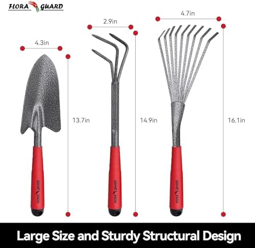 HEAVY-DUTY HIGH CARBON STEEL:Made from premium high carbon steel for exceptional durability and strength. These gardening hand tools resist bending, rust and corrosion, providing reliable performance for both light gardening tasks and heavy-duty yard work.