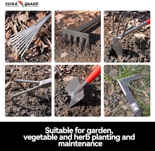 MULTI-PURPOSE GARDENING TOOLS:Each tool serves a specific purpose. The hand trowel and rakes are ideal for soil preparation and planting, while the double hoe and cultivator easily loosen compact soil and remove stubborn weeds. The crevice weeder helps clean narrow gaps and garden edges.