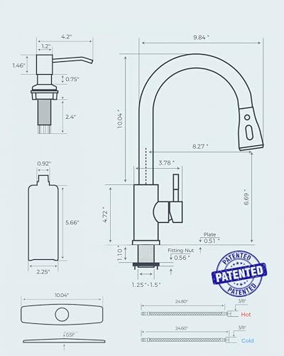 Stylish Design — This USA/CAN standard faucet for kitchen sink features a stylish, minimalist design that blends seamlessly with most kitchen styles. * Patent No.: US 11,215,289 B1/ US 11,614,174 B1/ US 12,473,719 B2