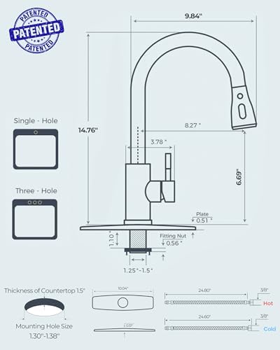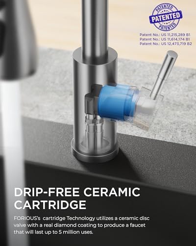Minutes to Install: Install the FORIOUS faucet for kitchen sink in under 15 minutes with no professional help. It features a 10-inch detachable deck plate for one, two, or three-hole sinks and includes all mounting hardware for a hassle-free setup