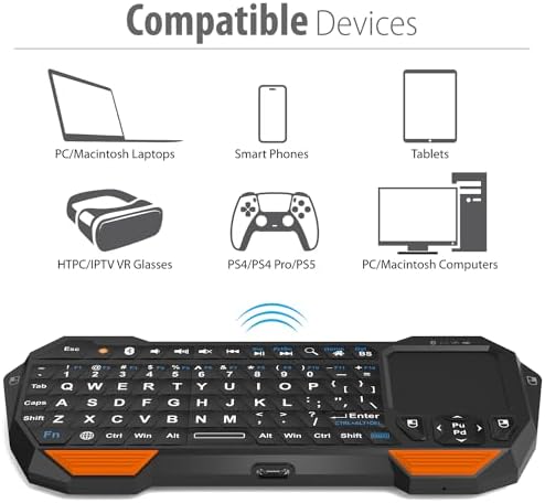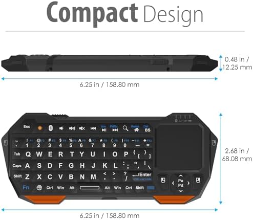 Compact and Portable QWERTY Keyboard with Touchpad: Innovative and compact QWERTY keyboard with touchpad that provides comfort combined with the freedom of wireless connectivity. Connect to all of your favorite devices with this wireless keyboard. This controller gives you everything you need right in the palm of your hand. Navigate the cursor easily with your thumb without having to touch your screen, mouse or keyboard.