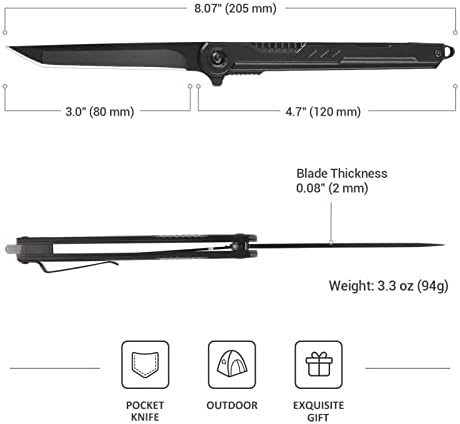 FLIPPER OPEN: With ball bearing pivot deploys the blade smoothly, this folding knife is safe and easy to operate by both left and right handed users, never worrying about unexpected closure. A nice gift for men dad husband.