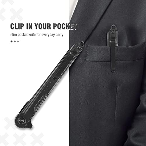 Compact and Portable: Pocket knife with clip can be clipped in pockets and backpack, preventing loss when doing outdoor activities. This edc knife can do daily tasks like open mail, assist in the preparation of food, and take care of odd tasks like cutting rope and other items.