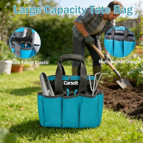 Garden Tote Bags Enough Hold All – Large-capacity garden totes are used to store all garden tools to help you store tools neatly. Made of sturdy polyester, which is durable and tear-resistant. It has 8 external side pockets with wide elastic loops above the pockets to keep tools in place! Keeping your tools neatly organized will make gardening even more enjoyable!