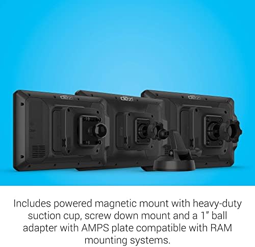 Several mounting options, including powered magnetic mount with heavy-duty suction cup, screw down mount and a 1” ball adapter with AMPS plate compatible with RAM mounting systems