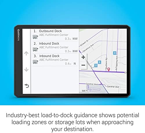 Industry-best load-to-dock guidance shows potential loading zones or storage lots when approaching your destination
