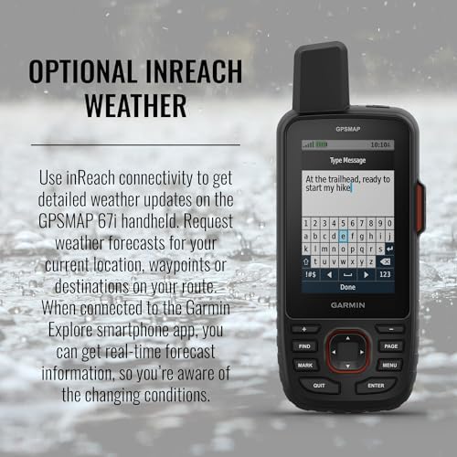 The Garmin GPSMAP 67i handheld and GPS satellite communicator is the ultimate companion for Hiking, Camping, and outdoor Adventures, offering unparalleled connectivity, navigation, and durability. With inReach satellite GPS Handheld communication, users can stay connected with two-way messaging, interactive SOS alerts & location sharing via the global Iridium network, ensuring safety and communication in locations. Featuring long battery life, multi-band GNSS support, and ABC sensors, this device provides accurate navigation data even in challenging conditions. Preloaded with detailed maps and offering premium map features with subscription. With the Garmin Messenger app and Garmin Explore app, seamless integration with smartphones enables messaging, group communication, and waypoint syncing. This handheld is built to military standards for thermal, shock and water performance (MIL-STD-810), and it’s even compatible with night vision goggles. Use inReach connectivity to get detailed weather updates on the GPSMAP 67i handheld. Request weather forecasts for your current location, waypoints or destinations on your route. Access multiple global navigation satellite systems (GPS, Galileo and QZSS). Get access to multiple frequencies sent by navigation satellites for improved position accuracy in areas where GNSS signals are reflected, weak or typically don’t penetrate. Built to military standards and equipped with a built-in LED flashlight, the Garmin inReach GPSMAP 67i Handheld GPS Satellite Communicator is rugged and reliable for any adventure, making it the ultimate tool for outdoor exploration and safety.