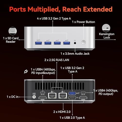 โ[ Secure USB4 & Versatile Connectivity ] Level up your GEEKOM A7 Max mini computer with dual 40Gbps USB4 ports offer OCuLinkโlevel speed with better security and hotโswap ease. Connect eGPUs, highโspeed storage, or multiโmonitor setups without internal mods. Also includes 5ร USB 3.2, dual TypeโC, dual HDMI, and a Kensington lock. No adapters neededโdirectly hook up to 4 displays via 2ร HDMI 2.0 + 2ร USB4 ports for a highly efficient workstation.