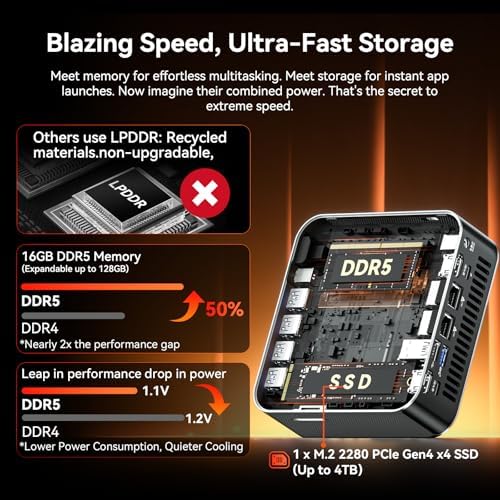 โ [No Need to Pay for Performance You Don’t Need in Advance]We focus the budget on CPU performanceโmemory is yours to upgrade or use as-is. Comes with 16GB DDR5 (dual slots, one occupied), expandable up to 128GB. Storage includes a 1TB M.2 NVMe Gen4ร4 SSD, upgradeable to 4TB, plus a UHS-II SD card slot supporting up to 2TB for creators. The 16GB+1TB combo delivers a perfect balance of performance and costโno upgrades needed, no storage anxiety.