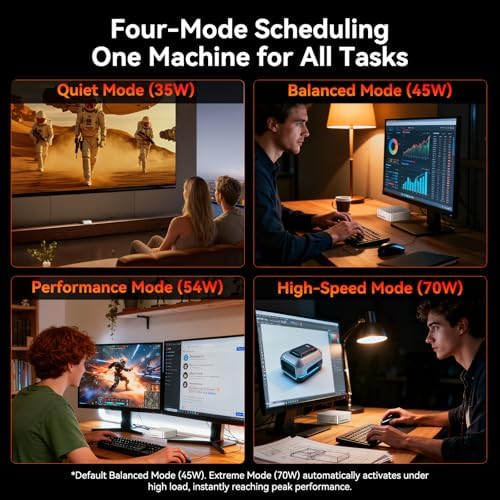 โ [ The Best Mini PC Choice of 2026 ] A7 MAX mini gaming pc with an AMD Ryzen 9 7940HS processor (8-core/16-thread, up to 5.2GHz), it handles everything from quiet office tasks to demanding gaming with ease. Switch between four performance modes on demand. Its all-aluminum chassis houses the AMD Radeon 780M GPUโcapable of ray tracing for smooth 1080p AAA gaming, no dedicated graphics card required. Ryzen AI also accelerates 4K video editing in DaVinci Resolve or Premiere Pro, freeing up the main CPU and GPU for core work.