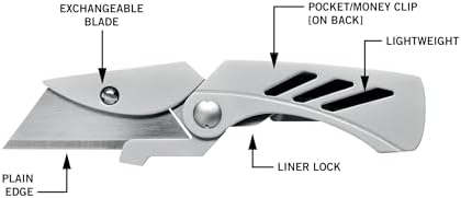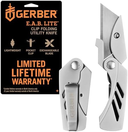 Elevate your everyday carry (EDC) gear with the Gerber Gear EAB Lite Pocket Knife, a compact folding knife that redefines the standard utility knife. This versatile EDC knife features a contractor-grade replaceable utility blade, making it an essential tool for various cutting tasks. Crafted with a durable stainless steel body and secure liner lock construction, this lightweight pocket knife doubles as a convenient money clip, ensuring it’s always ready for action. The Gerber EAB (Exchange-A-Blade) Lite boasts a slim design that easily fits in your pocket, making it an ideal companion for outdoor enthusiasts, tradesmen, and everyday users alike. Its deep finger grooves provide a secure grip, enhancing control and safety during use. Whether you’re opening boxes, slicing rope, or tackling everyday cutting tasks, this utility blade knife delivers exceptional performance.
