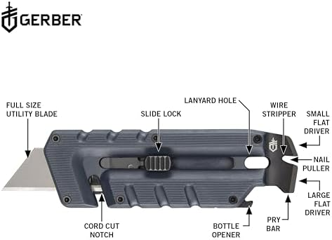When you need a versatile everyday carry tool, reach for the Gerber Gear Prybrid Utility Knife. This compact multi-tool is designed to tackle your to-do list at home, at camp, or on the job site. Combining the functionality of a replaceable utility blade knife and a pocket-sized multi-tool, it’s the ultimate EDC companion. The Prybrid Utility Knife features eight essential tools: a pry bar, nail puller, wire stripper, small and large flathead drivers, bottle opener, cord cut notch, and an exchangeable standard utility blade. Its no-fuss, dual-ended design offers immediate access when you need it most. Crafted for portability, this multi-tool pocket knife is meant to be carried in your pocket or on a keychain, always ready for action. Like all Gerber products, this hybrid utility cutter is backed by the Gerber Guarantee, our limited lifetime warranty. Whether you’re a DIY enthusiast, outdoor adventurer, or professional tradesman, the Prybrid Utility Knife is the compact multi-tool you can rely on for all your cutting and prying needs.