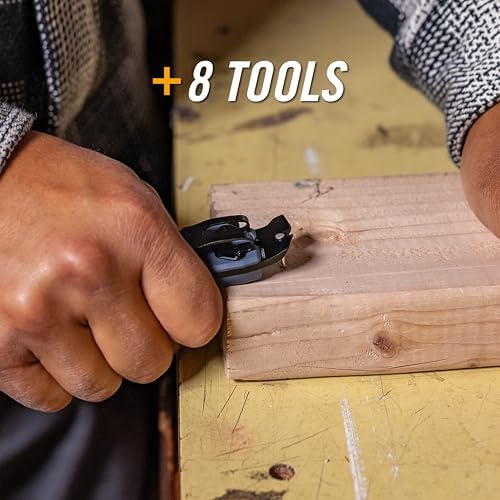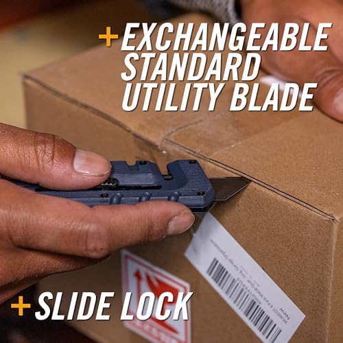 8-IN-1 MULTITOOL EDC KNIFE: Features an exchangeable standard No. 11 utility blade with slide lock, wire stripper, small flat driver, large flat driver, nail puller, pry bar, bottle opener, and cord cut notch