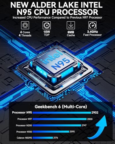 12th INTEL ALDER LAKE N95 PROCESSOR – The G3S mini pc uses the 12th Intel N95 CPU 4 Core 4 Threads 6MB cache, burst speed up to 3.4GHz. Compared with (N100/N5105/N5100/N5095), the N95 offers an overall performance improvement of 36%. Ideal for routine tasks, office work and home entertainment,which is more convenient than traditional desktop pc