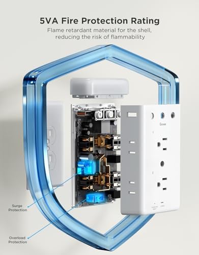 Multiple Safety Protections: Built with a 5VA fire-retardant shell and equipped with surge & overload protection. It effectively minimizes the risk of electrical fires and damage, ensuring a safer environment for your family and devices.Protect what matters most.