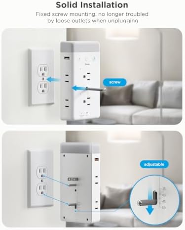 Securely Stays Put: Our retaining screw installation ensures it stays firmly in place. Combined with wide 1.97-inch outlet spacing, even the largest plugs fit with ease, eliminating frustration and adapter clashes. Enjoy a rock-solid and clutter-free power solution for all your devices.