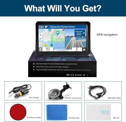 【What You Get】 ①GPS Navigation with CE & RoHs Certificate ②Car Charger ③USB Cable ④Suction Cup Mount ⑤Back Bracket ⑥User Manual. (Common questions and operates are in user manual, please read it carefully before or while you use your navigation. If you need further help, please feel free to contact us.
