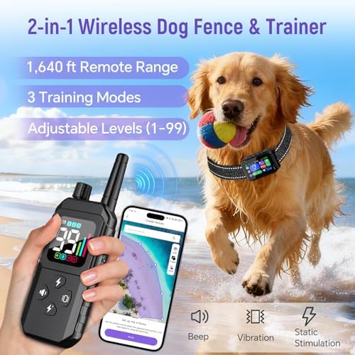 【Dual Control: App & Remote Training】 Enjoy flexible control with both app-based settings and a handheld remote for training. The remote works up to 1640 ft, while the app connects within about 100 ft—perfect for open outdoor areas. This dual-control system allows real-time adjustments for better safety and training consistency.