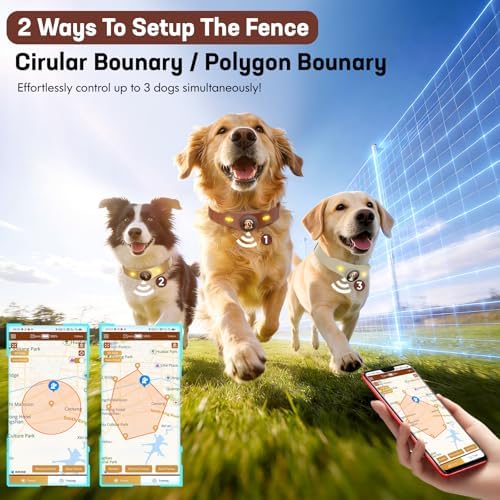 【Custom Fence Shapes Fit Irregular Yards & Complex Terrains】 Work with the free app to draw circular or polygonal electronic dog fences, perfectly adapting to irregular yards, gardens, ranches and complex outdoor terrains. When your dog approaches the set boundary, the collar releases a gentle beep reminder first, then optional vibration or static correction to stop escaping, making it a reliable wireless pet fence for active exploring dogs.