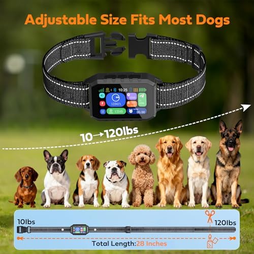 Dog Collar Fits: 10lb-120lb Dogs/ Neck Size 8-25 Inches/ 6 Months+ Dogs / Wearing Time ≤ 12 Hrs a Day Dog Activity Monitor: Health &Activity Data (record up to 3 months)